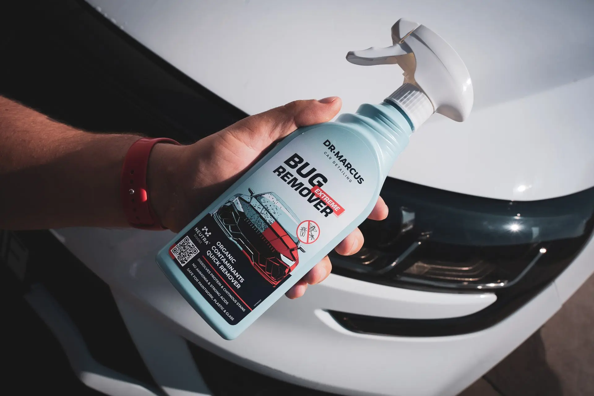 Rješenje: Extreme Bug Remover, koncentrovana formula sa blago alkalnim pH koja rastvara organsku, proteinsku i hitinsku prljavštinu, uključujući čak i najsušenije oklope insekata, za samo 30 sekundi. Ima jaka svojstva vlaženja i odvaja tvrdokornu prljavštinu. Gusta konzistencija osigurava da se ne slijeva s očišćene površine. Ne sadrži amonijak, jake kiseline i alkalije, što ga čini sigurnim za lak, staklo i farove, zaptivke, plastiku i hrom.